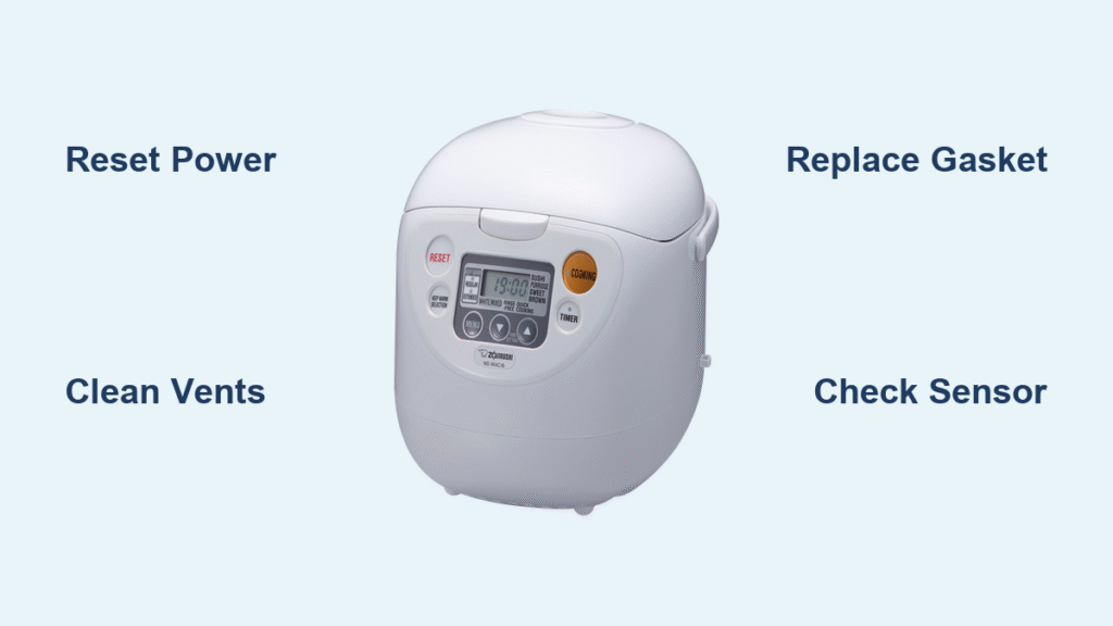 Your Zojirushi rice cooker suddenly powers down mid-cycle, leaving half-cooked rice and a kitchen full of steam. Before you panic