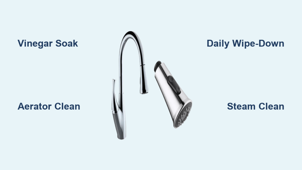 During kitchen cleanings, run your finger along the faucet head’s underside. If you detect roughness or white specks, perform a vinegar soak immediately. Catching buildup early means 15-minute fixes instead of hour-long deep cleans.