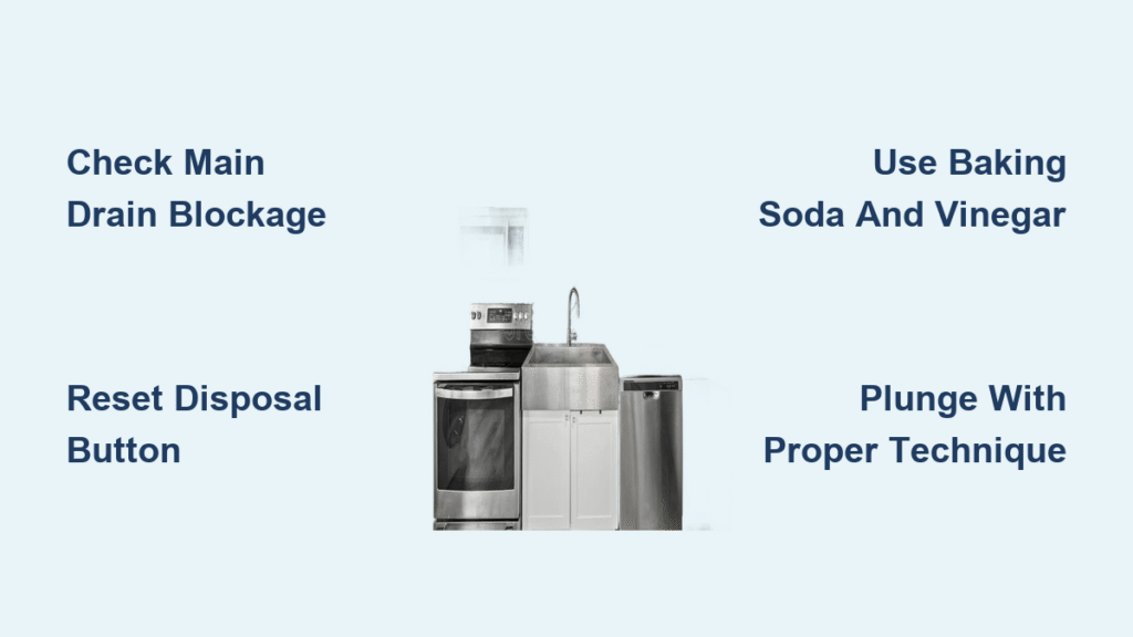 Locate the red reset button on your disposal’s bottom (size of a pencil eraser). Press firmly for 3 seconds until you hear a click. Wait 10 seconds, then restore power and test drainage. If water still doesn’t drain: