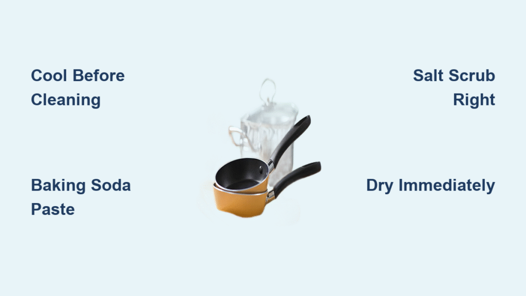 Right after cooking, add one cup water to the hot pan (no need to cool first). Bring to a simmer while scraping the bottom with a wooden spoon—the thermal shock releases stuck particles before they harden. Discard the liquid, then apply baking soda paste to any remaining residue. This technique saves 80% of cleanup time for meat drippings or sauce reductions.