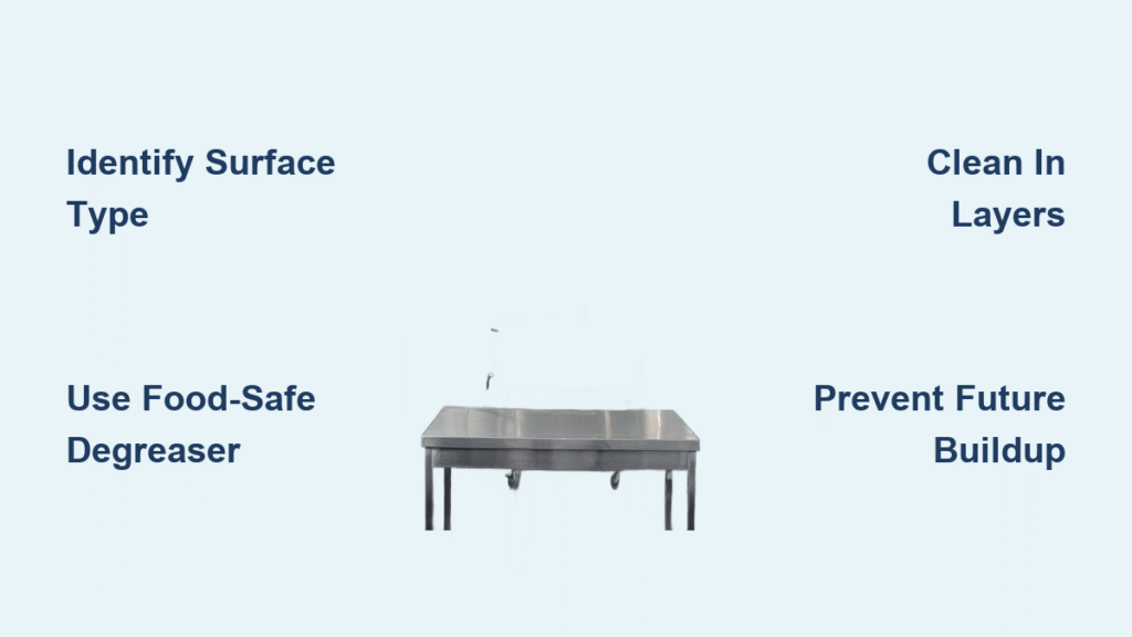 Dry Removal First: Use plastic scrapers (never metal) to remove thick grease chunks without damaging surfaces. Paper towels absorb surface oil effectively—replace frequently to avoid spreading grease.