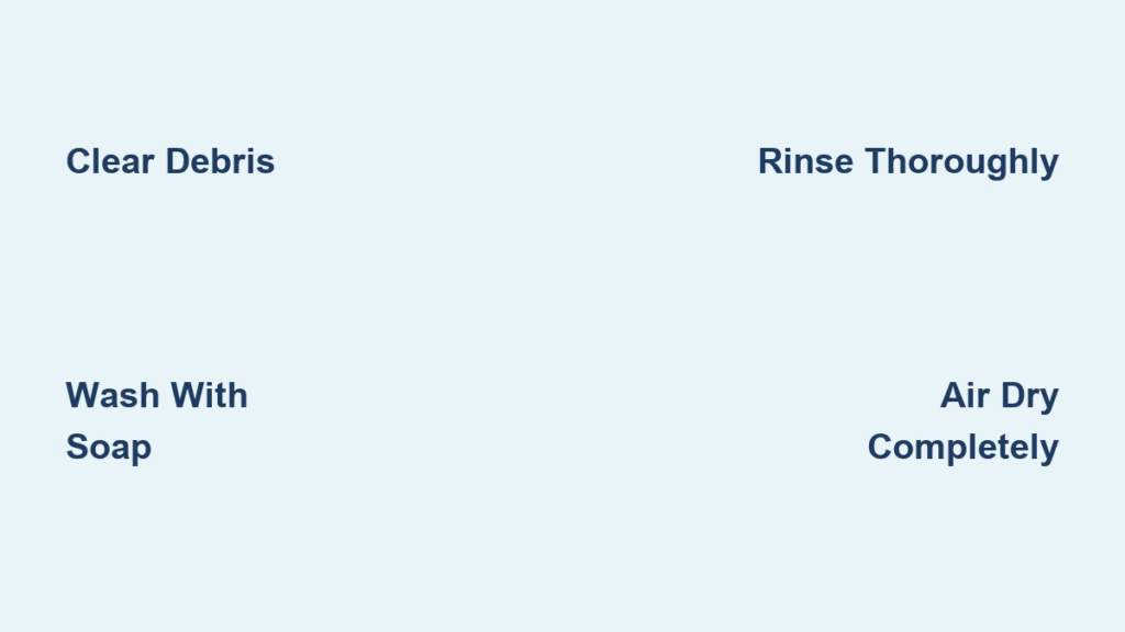 Use a fresh cloth dampened with clean water to remove all soap residue. Change rinse water if it becomes cloudy—dirty rinse water redeposits grime. Why this matters: Soap film creates a barrier that prevents disinfectants from contacting pathogens. Incomplete rinsing reduces killing power by up to 90%.