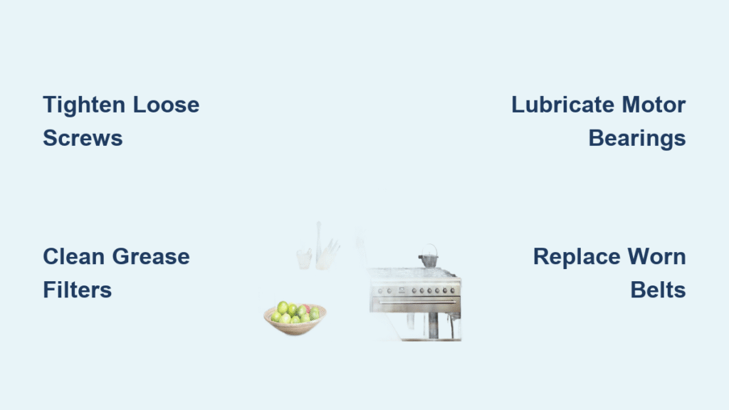 Clogged filters force your fan to work 30% harder, amplifying all mechanical noises. Remove filters and soak in hot, degreasing solution (1 part dish soap to 4 parts water) for 30 minutes. Scrub gently with a nylon brush, rinse thoroughly, and dry completely before reinstalling. For stainless steel filters, add vinegar to the soak solution to cut stubborn residue.