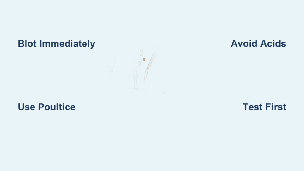 When coffee hits, press a clean microfiber cloth straight down for 15 seconds—never slide it. This lifts surface liquid before it penetrates. Follow immediately with a damp cloth dipped in pH-neutral stone cleaner (like diluted dish soap), wiping gently in circular motions. Rinse with distilled water on a separate cloth. For stains under 5 minutes old, this method works 90% of the time. Critical warning: Vinegar or lemon juice dissolves granite’s protective sealant within seconds, leaving a dull, etched spot.