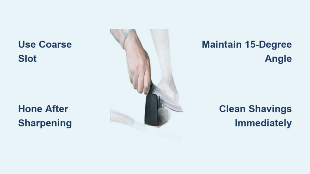 Maintaining razor-sharp knives isn’t about skill—it’s about consistent, correct technique. By following this precise how to use a kitchen knife sharpener method, you’ll transform frustrating prep work into effortless precision. Remember: that coarse slot is your emergency repair tool, not your default setting. Honing after every heavy use session keeps your edge performing like new for months. Keep your pull-through sharpener beside your cutting board, and you’ll never again wrestle with a tomato or risk a dangerous slip from a dull blade. Your safest, most enjoyable cooking experience starts with this 10-minute maintenance ritual.