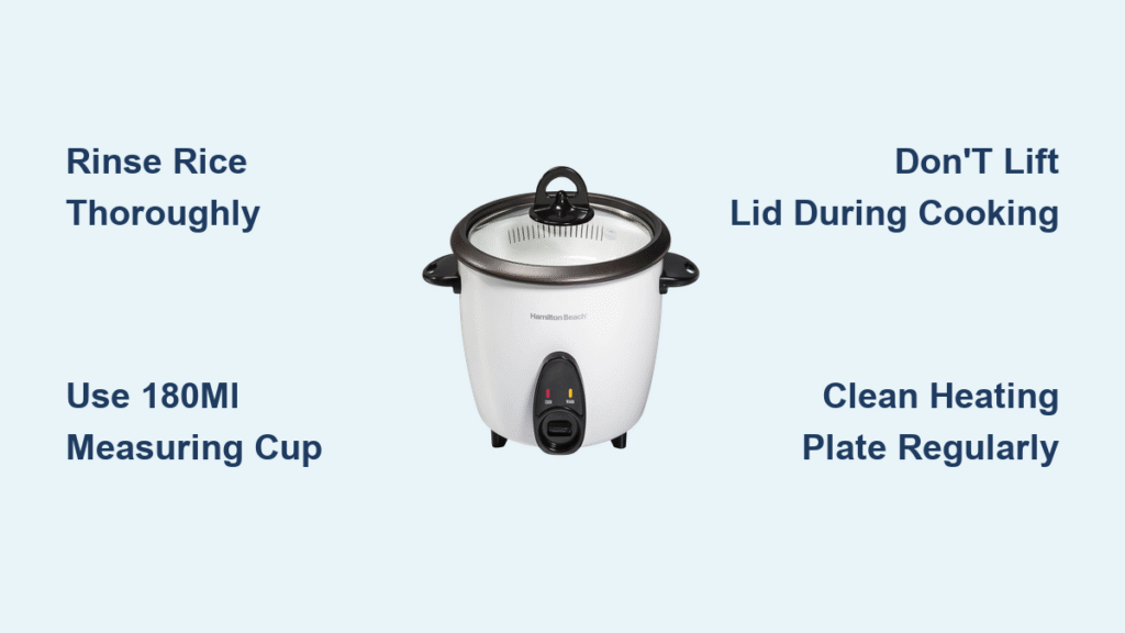 Perfect rice starts with precise measurements. The provided measuring cup equals exactly 180ml or 3/4 of a standard US cup—using regular cups throws off ratios and leads to disappointing results. Understanding these ratios is critical when you learn how to use Hamilton rice cooker effectively.
