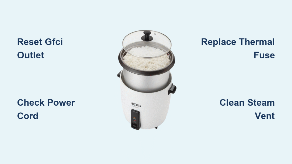 Your Aroma rice cooker sits lifeless on the counter while dinner plans crumble. The “Cook” button does nothing, rice boils